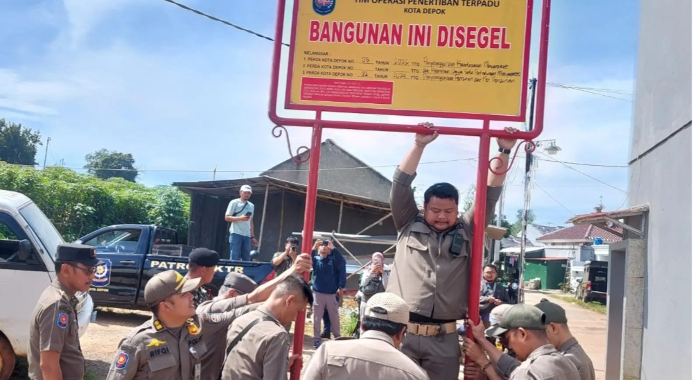 Satpol PP telah memasang papan penyegelan di sejumlah titik proyek sebagai penanda bahwa aktivitas pembangunan dihentikan sementara. Tindakan itu merujuk pada dua perda, yakni Perda Kota Depok Nomor 5 Tahun 2022 tentang Ketertiban Umum dan Perda Nomor 2 Tahun 2024 tentang Penyelenggaraan Perizinan dan Non-Perizinan.