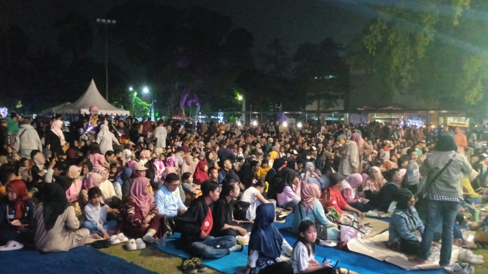 Pantauan di lokasi, meski dalam kondisi gerimis, tampak masyarakat antusias berdatangan ke lapangan utama Balaikota Depok. Beberapa dari warga bahkan membeli tikar yang dijajakan pedagang sebagai alas duduk lantaran karpet yang disediakan dalam kondisi basah.