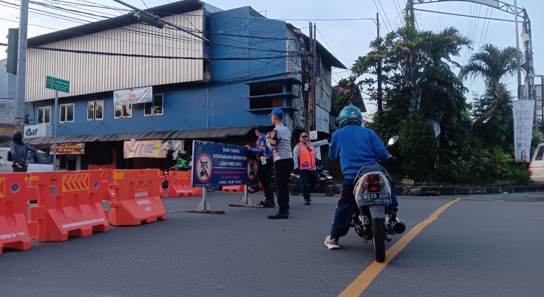“Ya, jam 06.00 kita tutup. Ini untuk memastikan area steril dari kendaraan saat CFD dimulai,” ujar Amsori, petugas Dishub yang berjaga di lokasi.