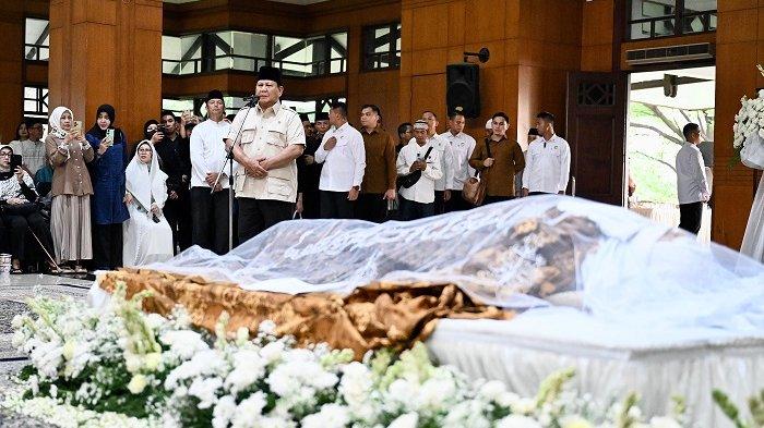 Prabowo melayat langsung ke Padepokan Pencak Silat Taman Mini Indonesia Indah (TMII), Jakarta Timur, tempat jenazah disemayamkan sebelum dimakamkan secara militer di Taman Makam Pahlawan Kalibata, Jakarta.