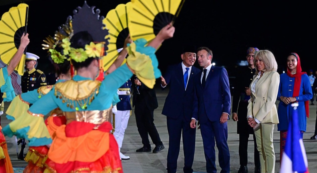 Presiden Macron tiba di Jakarta sekitar pukul 22.00 WIB bersama Ibu Negara Brigitte Macron dan rombongan delegasi resmi. Kedatangan mereka disambut dengan upacara kehormatan yang meriah, serta penampilan Tari Nandak Ajer sebagai simbol sambutan budaya khas Indonesia.