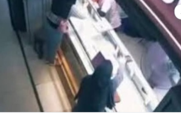 Rekaman CCTV menunjukkan kedua wanita tersebut dilayani oleh dua pegawai toko. Mereka berdiri di sisi kanan dan kiri etalase. Salah satu wanita, mengenakan jilbab dan baju kotak-kotak hitam, terlihat sedang memilih perhiasan emas. Sementara itu, wanita lainnya yang mengenakan baju dan jilbab hitam juga dilayani oleh pegawai lain.
