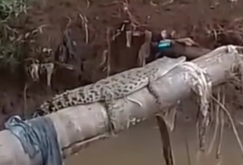 Video buaya yang sedang bertengger di atas kayu tersebut pun viral di media sosial.