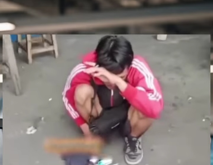 Dalam video tersebut, pemuda yang berjongkok dengan wajah tertutup tangan itu diduga tepergok saat hendak mencuri sepeda motor.