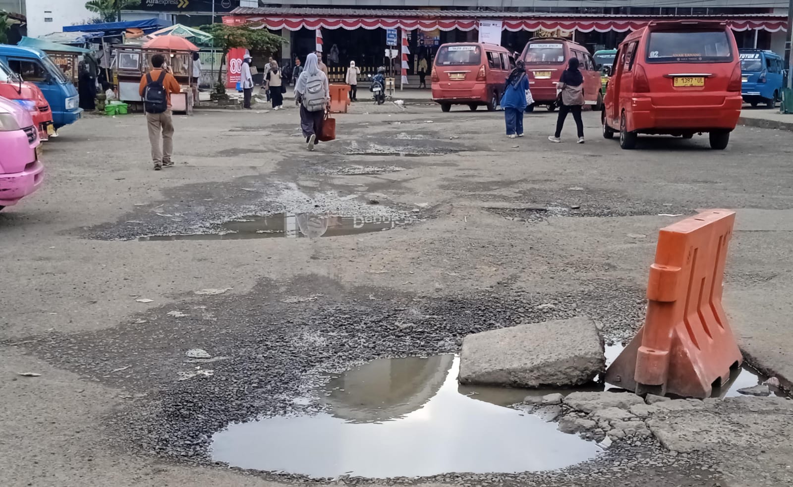 Kondisi jalanan berlubang juga berdampak pada keselamatan pengguna jalan. Belum lagi, debu dari jalanan yang rusak kerap mengganggu pernapasan, terutama bagi pejalan kaki dan pedagang di sekitar stasiun.