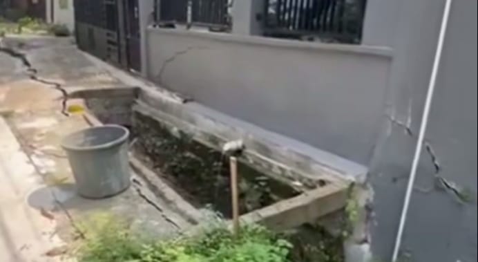 DEPOK, INDORAYA TODAY – Heboh! Tanah di Perumahan Wismamas, Kelurahan Cinangka, Kecamatan Sawangan, Kota Depok, tiba-tiba retak hingga mengakibatkan halaman rumah warga ambrol.