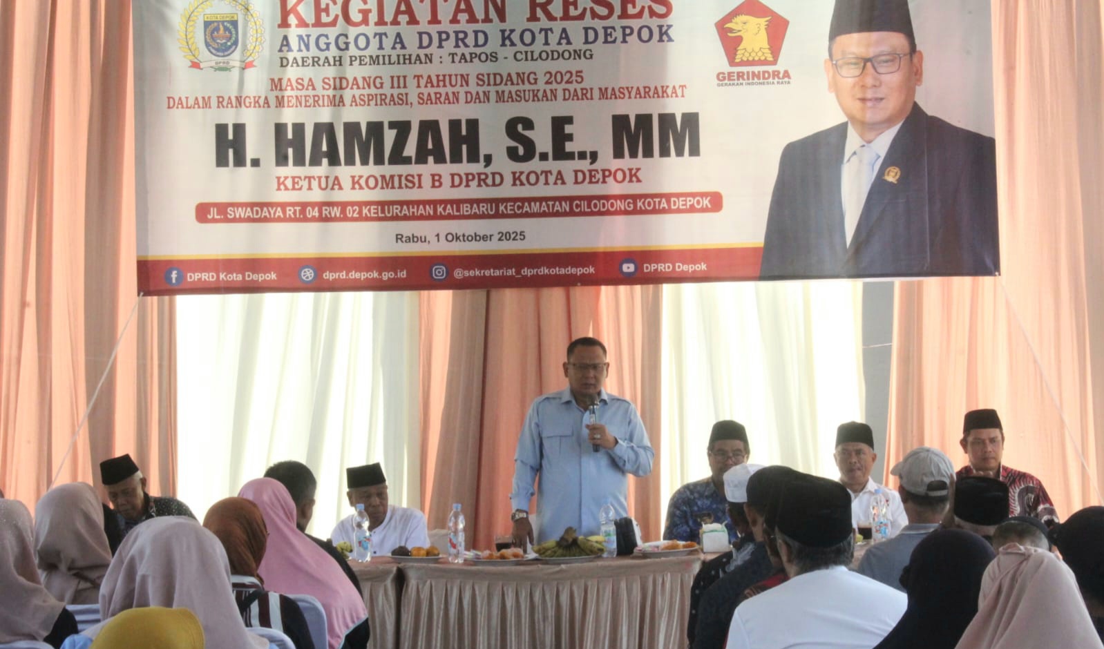 DEPOK, INDORAYA TODAY – Ketua Komisi B DPRD Kota Depok, Hamzah, memaparkan strategi pemanfaatan dana Rukun Warga (RW) saat kegiatan Reses Masa Sidang III Tahun 2025 di RT 04, RW 02, Kelurahan Kalibaru, Kecamatan Cilodong, Rabu (1/10/2025). Paparan ini bertujuan menampung aspirasi warga sekaligus mengarahkan pemanfaatan dana RW secara tepat dan berkeadilan.