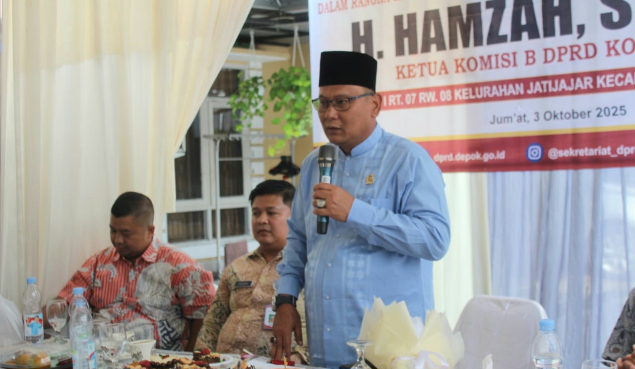 DEPOK, INDORAYA TODAY – Ketua Komisi B DPRD Kota Depok, Hamzah, menegaskan pesan penting dari Wali Kota Depok, Supian Suri, bahwa tidak boleh ada satu pun anak di kota ini yang putus sekolah. Hal itu ia sampaikan saat menggelar Reses Masa Sidang III Tahun 2025 di Jalan Jati I RT 07/RW 08, Kelurahan Jatijajar, Kecamatan Tapos, Jumat (3/10/2025).