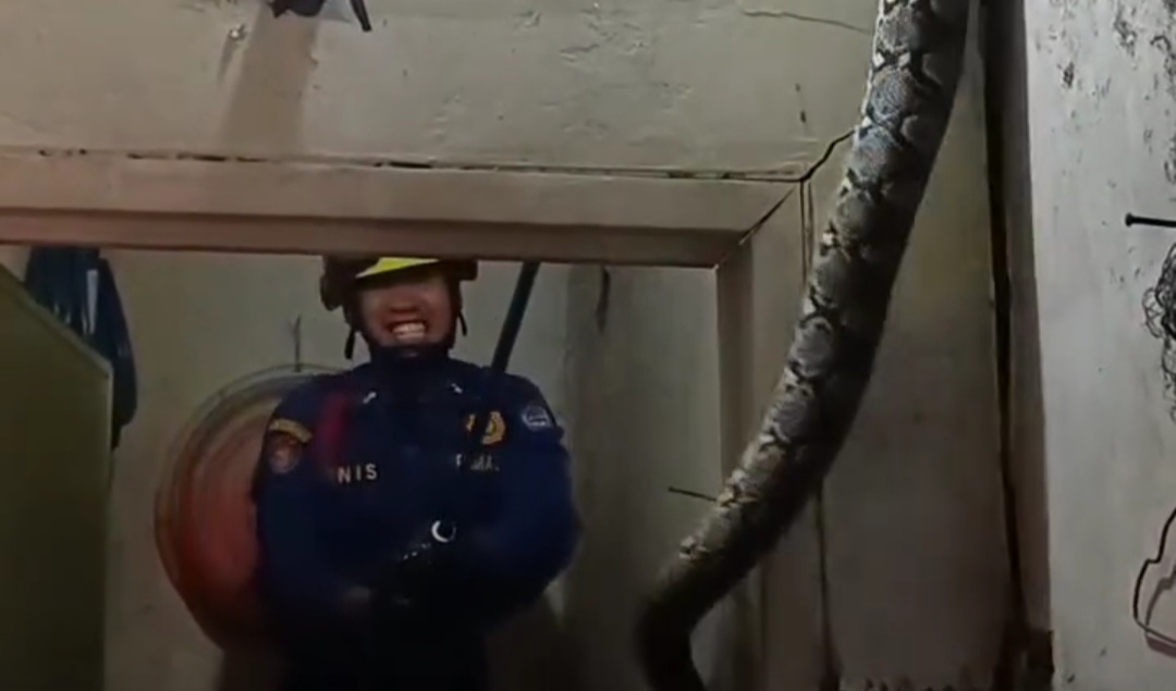 DEPOK, INDORAYA TODAY – Seekor ular sanca membuat resah penghuni rumah di kawasan Beji, Depok, setelah ditemukan berada di atas pintu kamar mandi pada Minggu (5/10/2025) dini hari. Pemilik rumah yang panik segera meminta bantuan petugas pemadam kebakaran untuk mengevakuasi reptil tersebut.