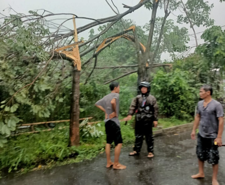 Hujan angin mengakibatkan sejumlah pohon bertumbangan dan mengganggu aktivitas warga.