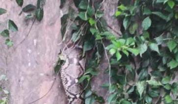 Warga yang panik, kemudian mendekat ke area tembok untuk melihat lebih jelas ular tersebut. Ternyata, kepala hingga sebagian tubuhnya terjebak di celah tembok sehingga kesulitan keluar.