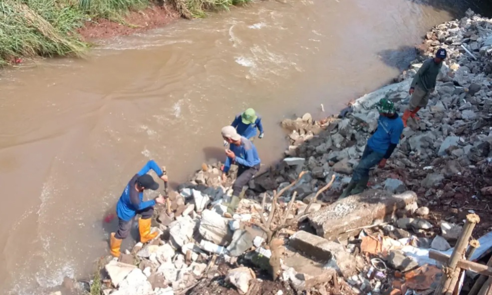 Longsor yang terjadi sejak akhir Oktober 2025 itu menyebabkan material tanah menutupi aliran sungai dan menyempitkan jalur air. Kondisi tersebut berpotensi menghambat aliran Kali Caringin jika tidak segera ditangani.