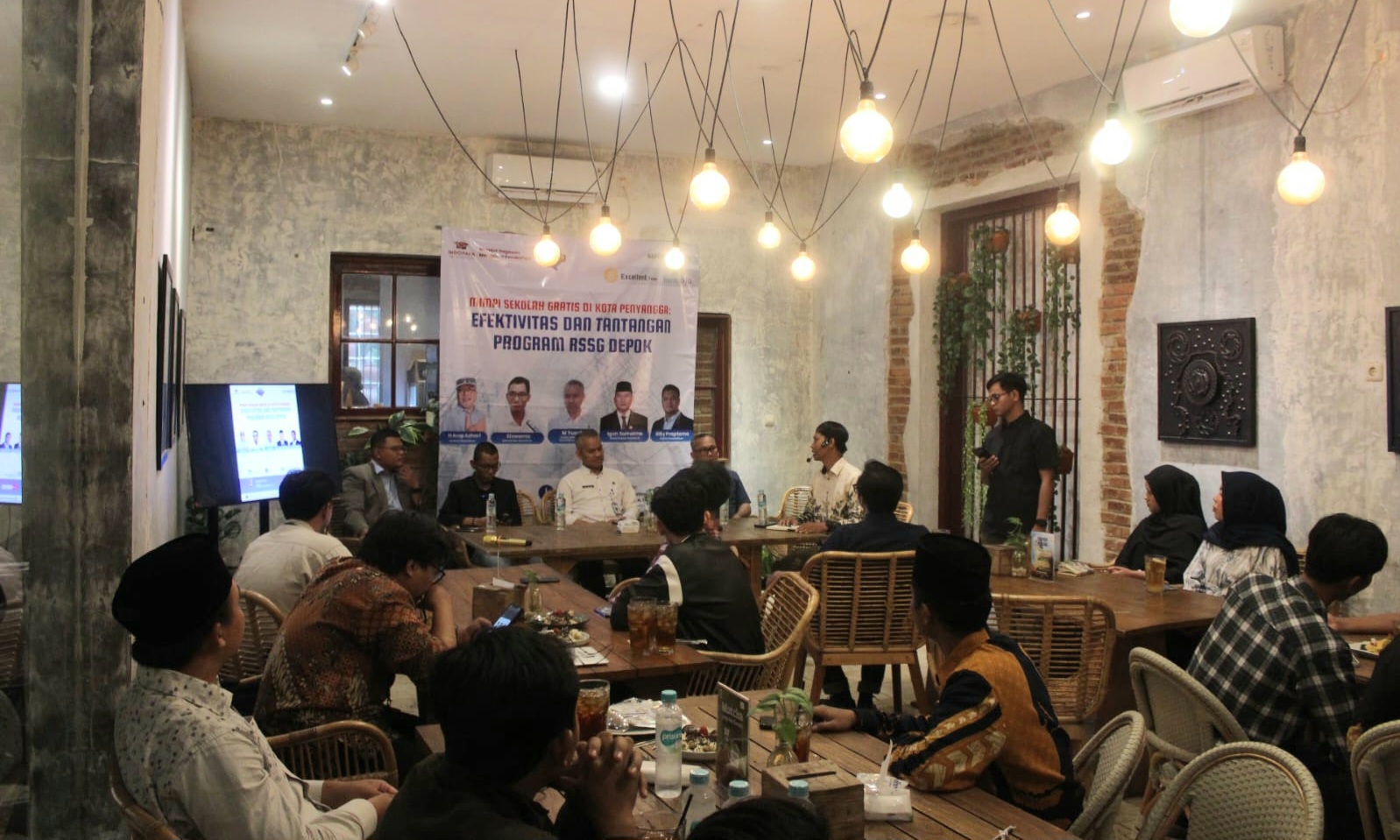 Diskusi yang mengusung tema “Mimpi Sekolah Gratis di Kota Penyangga: Efektivitas dan Tantangan Program RSSG Depok” itu menghadirkan sejumlah narasumber dari unsur legislatif, eksekutif, hingga praktisi pendidikan. Mereka antara lain Sekretaris Komisi D DPRD Kota Depok Siswanto, Wakil Ketua Komisi D Igun Sumarno, Kabid SMP Disdik Depok Muhammad Yusuf, serta praktisi pendidikan Rifky Pratama.