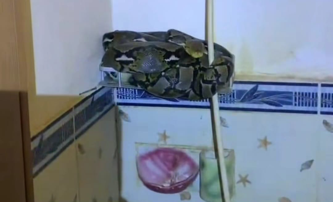 Uniknya, reptil melata tersebut ditemukan melilit di selang shower kamar mandi.