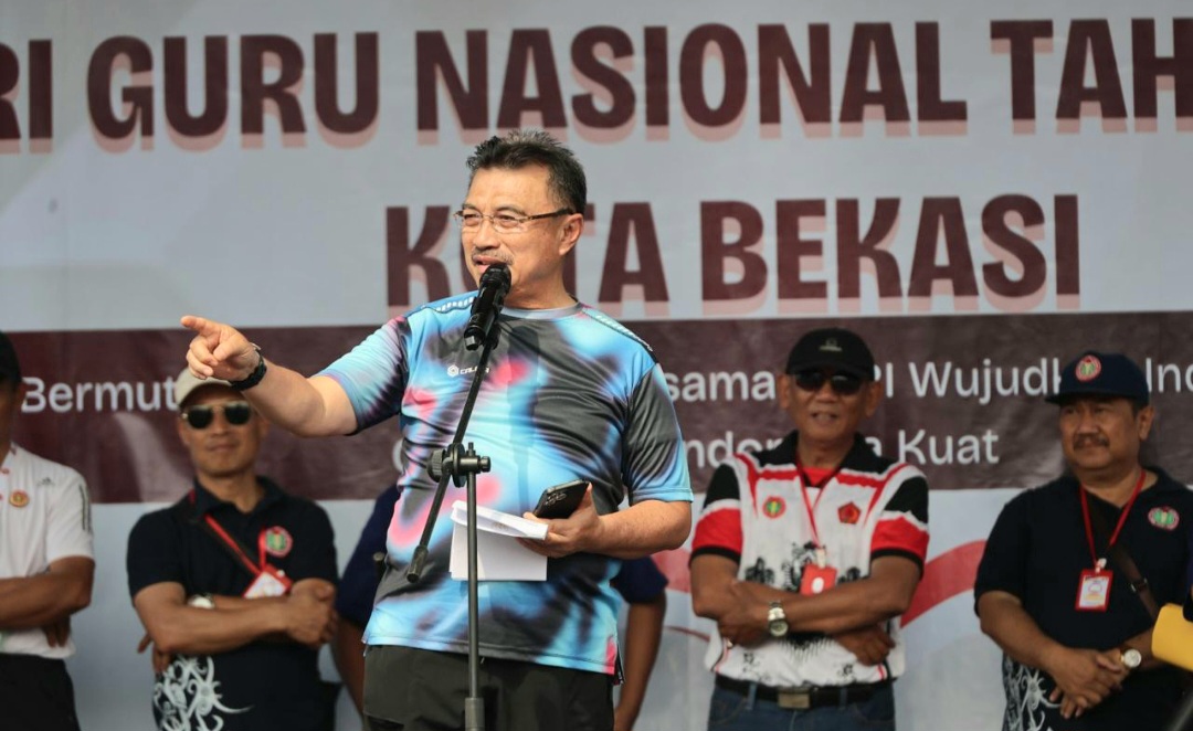 Acara tersebut diikuti ribuan guru dari berbagai sekolah di Kota Bekasi. Wakil Wali Kota tampak berbaur langsung dengan para peserta, menciptakan suasana hangat dan penuh kebersamaan sejak kegiatan dimulai.