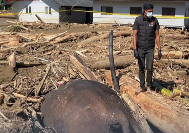 INDORAYATODAY.COM  -Seekor gajah sumatera (Elephas maximus sumatranus) ditemukan mati akibat terseret bencana banjir bandang di Kabupaten Pidie Jaya, Aceh, pada Sabtu (29/11/2025). Bangkai satwa dilindungi tersebut ditemukan terbenam di dalam tumpukan kayu hutan dan lumpur di lokasi yang terisolasi.
