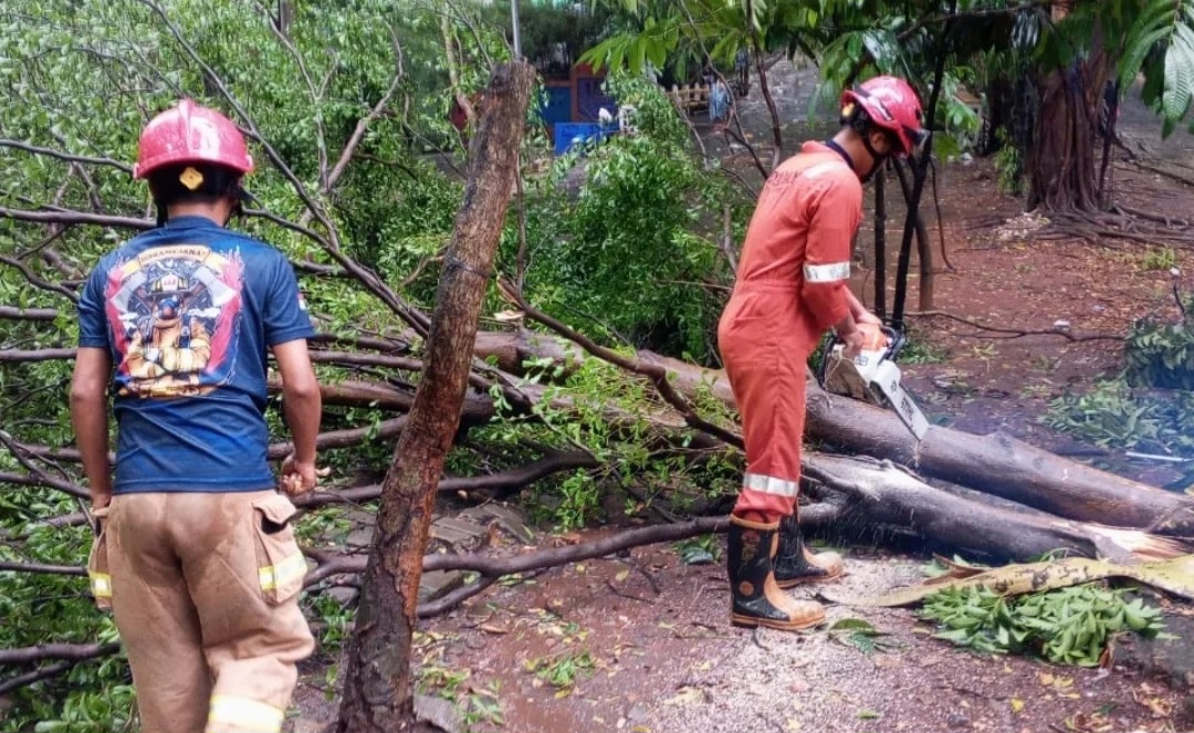 DPKP Kota Depok terus memantau titik-titik rawan pohon tumbang dan menyiagakan petugas untuk memastikan keselamatan warga.