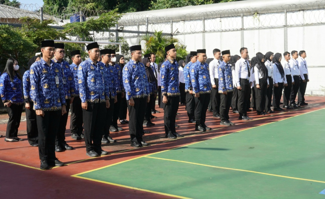 DEPOK, INDORAYA TODAY – Rumah Tahanan (Rutan) Kelas I Depok menggelar Upacara Peringatan Hari Ulang Tahun ke-54 Korps Pegawai Republik Indonesia (KORPRI) di lapangan internal rutan, Minggu (1/12/2025). Upacara berlangsung tertib dan diikuti pejabat manajerial, pegawai, peserta pemagangan nasional, serta warga binaan.