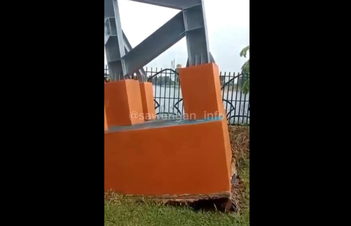 Informasi mengenai kemiringan tiang jembatan ini pertama kali diunggah oleh akun Instagram @sawangan_info pada Jumat malam.