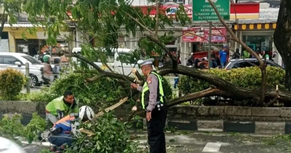 DEPOK, INDORAYA TODAY – Angin kencang menyebabkan sebuah pohon besar tumbang di Jalan Margonda Raya, Kota Depok, Senin (15/12/2025). Insiden ini mengakibatkan satu unit mobil tertimpa pohon dan mengalami kerusakan cukup parah.