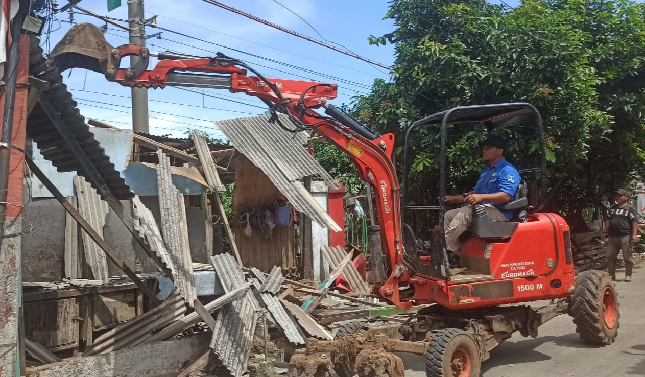 DEPOK, INDORAYA TODAY – Pemerintah Kota Depok melalui Dinas Pekerjaan Umum dan Penataan Ruang (DPUPR) bertindak tegas terhadap bangunan liar yang berdiri di atas saluran air. Bersama Satuan Polisi Pamong Praja (Satpol PP) serta sejumlah perangkat daerah terkait, DPUPR membongkar bangunan ilegal di belakang Pasar Kemiri, Kecamatan Beji, Selasa (16/12/2025).