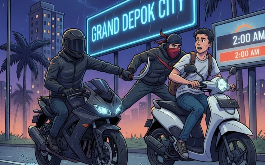 DEPOK, INDORAYA TODAY – Viral! Aksi begal bersenjata tajam terjadi di kawasan Grand Depok City, Minggu dini hari (28/12/2025).