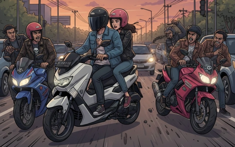 Peristiwa itu terjadi setelah korban menegur sekelompok pengendara motor yang melaju ugal-ugalan dari arah Jakarta menuju Depok. Teguran tersebut justru berujung serangan brutal.