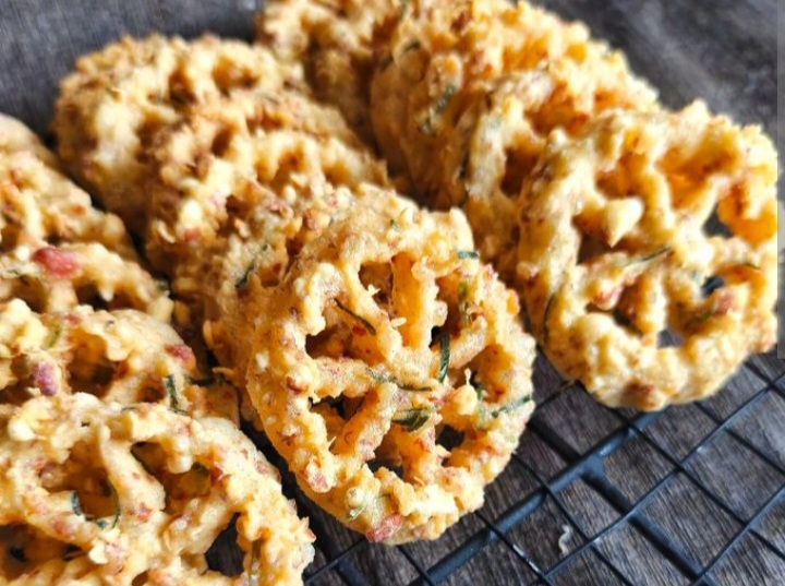 Peyek biasanya tampil dengan bentuk tidak beraturan, namun Peyek Gale khas Depok tampil cantik menyerupai kue kembang goyang. Menggunakan tepung beras dan daun kucai, peyek ini tersedia dalam berbagai varian rasa seperti ebi, kacang, hingga bayam. Bentuknya yang rapi menjadikannya camilan yang elegan untuk menjamu tamu.