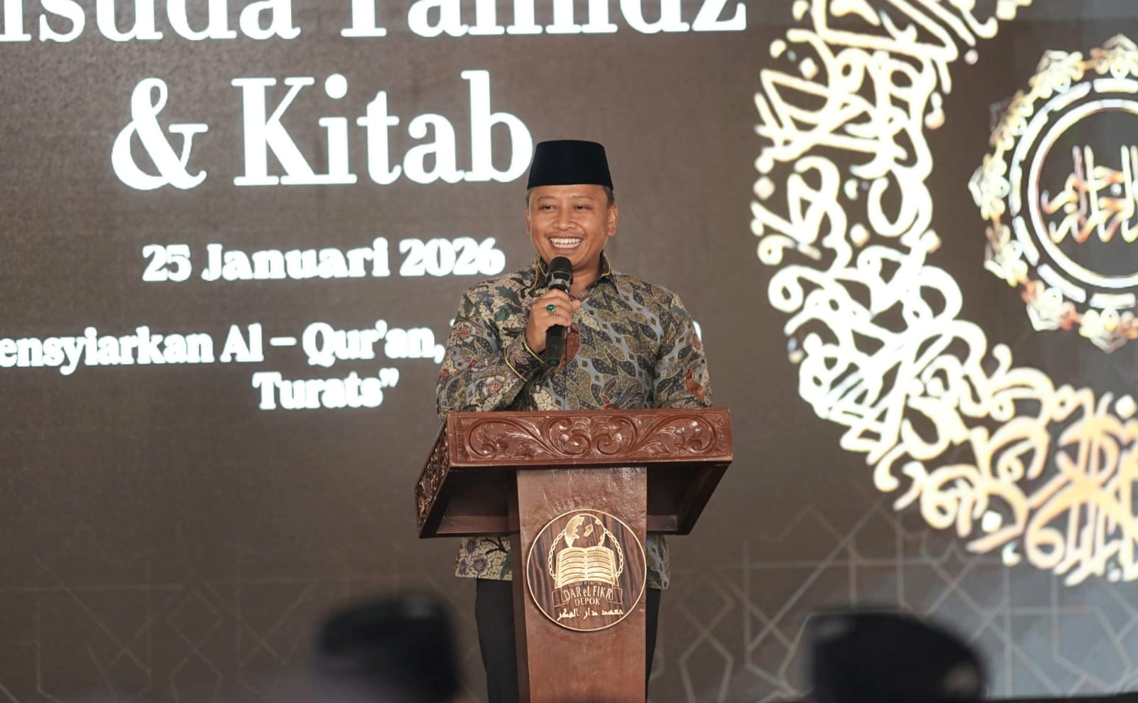 Hal tersebut disampaikan Supian Suri saat menghadiri Wisuda Tahfidz Al Quran 30 Juz dan Kitab santri Pondok Pesantren Dar el Fikr di Kelurahan Serua, Kecamatan Bojongsari, Minggu (25/1/2026). Ia menilai pesantren memiliki kontribusi besar dalam melahirkan generasi berakhlak dan berilmu.