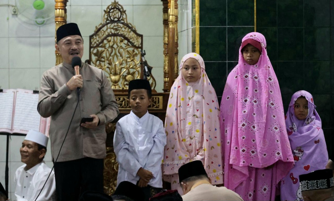 “Malam ini saya isi sambutannya dengan kuis saja, terkhusus buat anak-anak hebat yang berani maju ke depan dan bisa setoran surat pendek,” kata Abdul Harris.