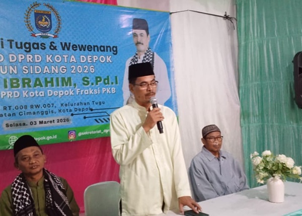 INDORAYATODAY.COM, DEPOK – Anggota DPRD Kota Depok dari Fraksi PKB, Ade Ibrahim, menggelar kegiatan Sosialisasi Komunikasi (Soskom) bersama warga di Kampung Areman RT 08 RW 07, Kelurahan Tugu, Kecamatan Cimanggis, Minggu (8/3/2026). Melalui kegiatan tersebut, ia menyampaikan berbagai program pembangunan Pemerintah Kota Depok sekaligus menampung aspirasi masyarakat.