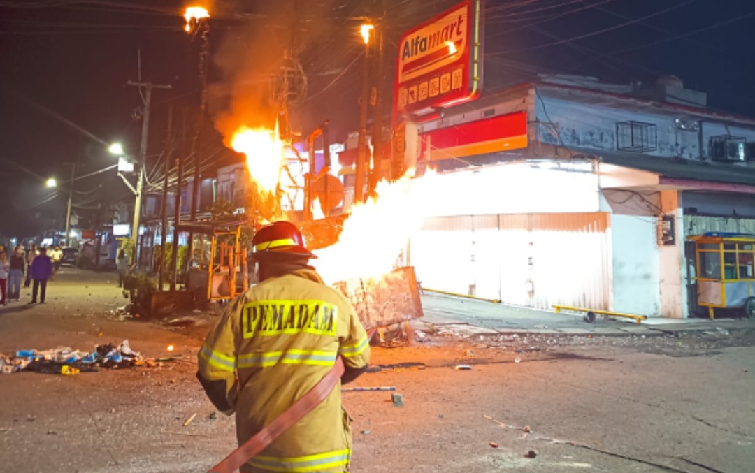 “Berdasarkan informasi warga, kejadian berawal dari perang petasan antar anak muda. Percikan api mengenai lapak penjual koran yang berbahan mudah terbakar sehingga api cepat membesar,” ujar Tesy.