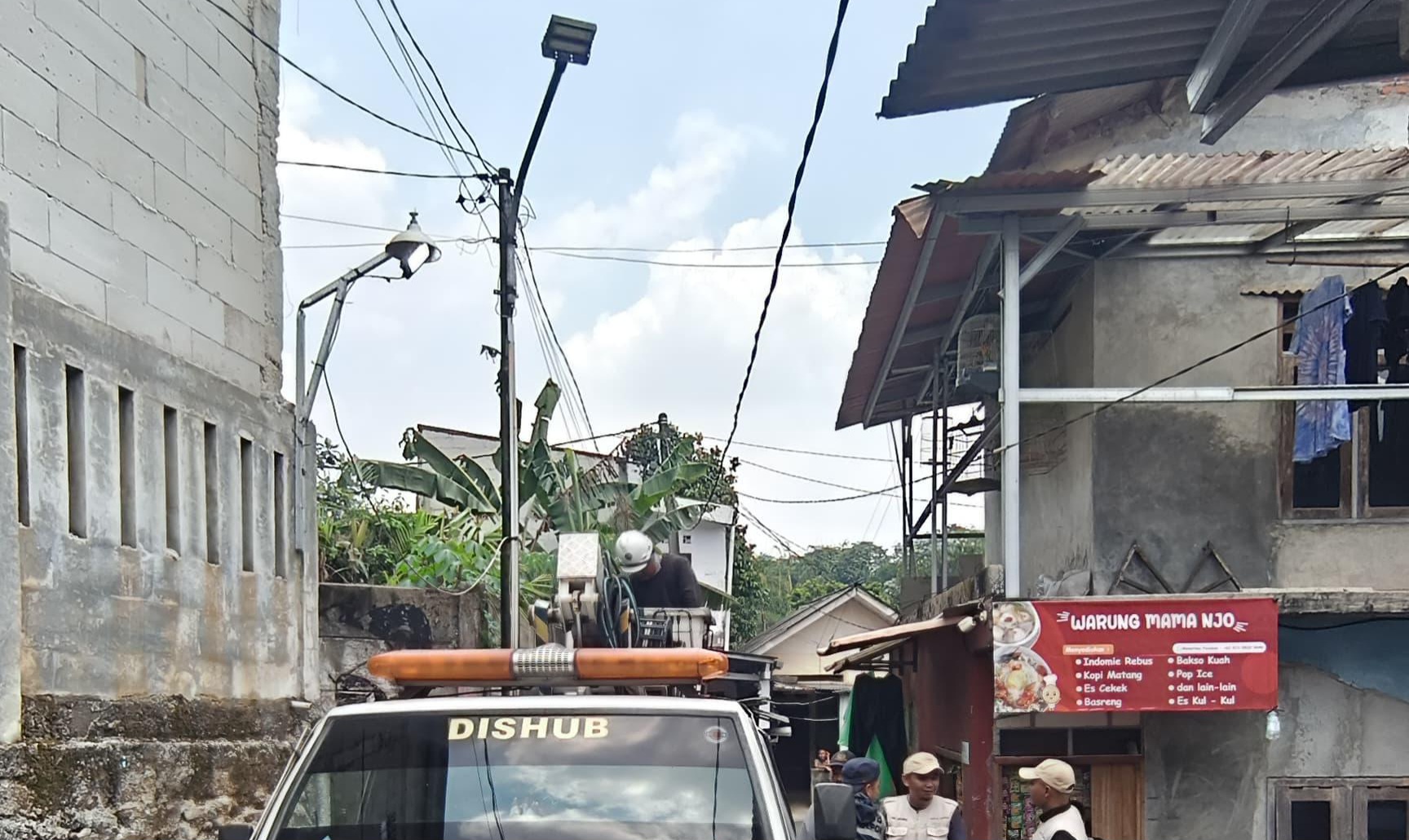 Proses perbaikan dilakukan oleh tim UPT PJU Dishub Kota Depok dengan didampingi regu Maung Bodas serta pengurus lingkungan setempat, yakni Ketua RT 06 dan RW 08.