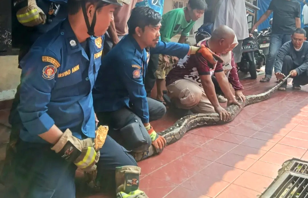 Kemunculan predator melata tersebut sempat memicu kepanikan penghuni rumah sebelum akhirnya dilaporkan ke Dinas Pemadam Kebakaran dan Penyelamatan (DPKP) Kota Depok.