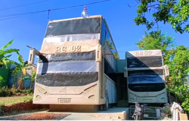 INDORAYATODAY.COM — Fenomena arsitektur unik kembali muncul di tanah air. Kali ini, sebuah hunian di Dukuh Tandan, Desa Kopen, Jatipurno, Kabupaten Wonogiri, mendadak viral lantaran desainnya yang menyerupai bus bertingkat atau double decker. Hunian milik Supardi (43) tersebut tampil sangat detail, hingga nyaris menyerupai armada bus antarkota yang tengah terparkir di halaman rumah.