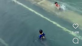 Video Viral, Anak-anak Berenang di Kolong Flyover Cikarang, Airnya Warna Biru
